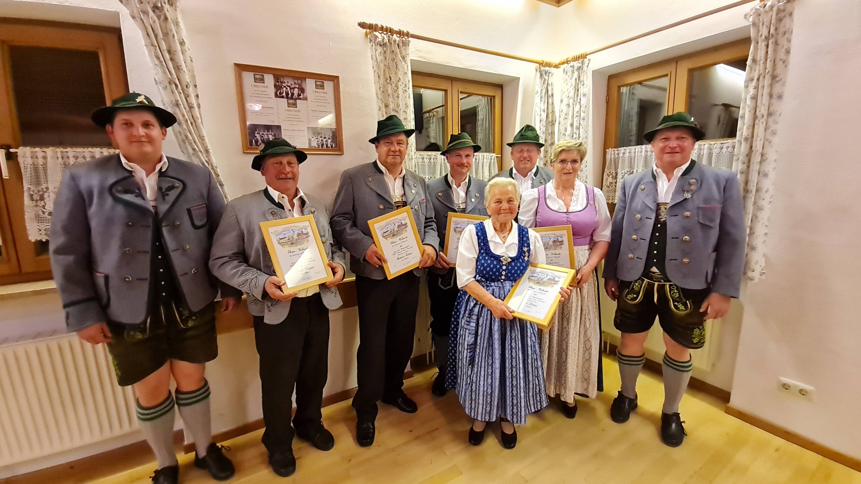 Seit 70 Jahren ist Anton Leitner senior Mitglied. Weitere Ehrungen gab es für Anna Leitner (60 Jahre), Andreas Scheffhold (50 Jahre), Margarethe Munding, Andreas Kreutterer sen., Andreas Leitner jr. (40 Jahre), Kaspar Spiel, Frank Wagner (25 Jahre). Einigen der Älteren, die selbst nicht bei der Versammlung dabei sein konnten, will Vorstand Gregor Kreutterer die Urkunden nach Haus bringen.