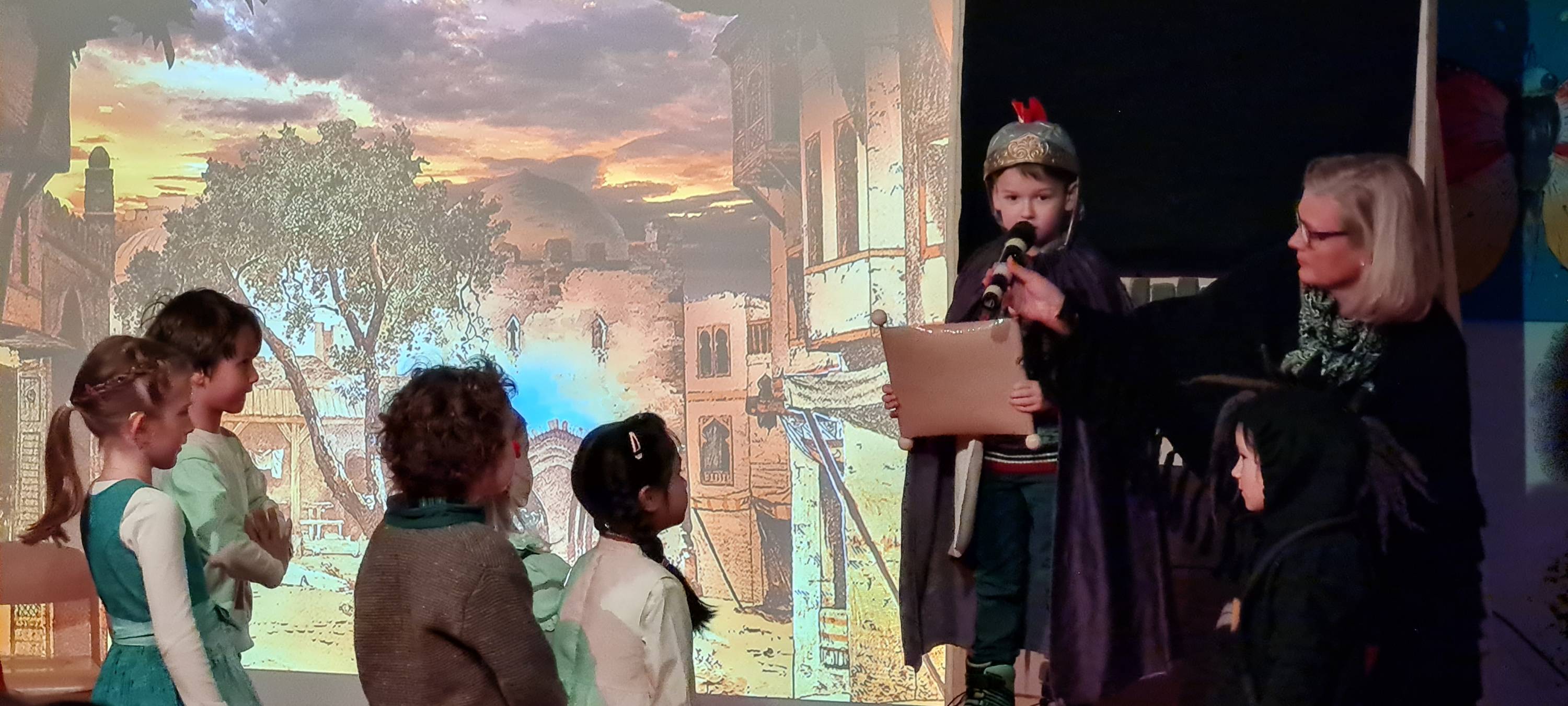 Viele ideenreiche Details hat das selbst sichtlich begeisterte und hoch engagierte Erziehungspersonal des katholischen Kindergartens mit Unterstützung versierter Eltern eingebracht. Mit perfekter Technik wurde per Beamer eine Kulisse auf die „Bühne“ gezaubert, die Darsteller und Publikum förmlich ins jüdische Land zu versetzen schien.