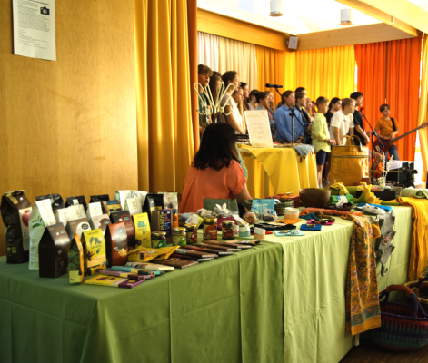Allen Beteiligten, Kindern und Erwachsenen, schmeckten die bereitgestellten Kostproben aus dem Weltladen sehr gut: Kaffee, Tee, Orangensaft, Schokolade, Honig, Marmelade, Nougatcreme - natürlich mit Semmeln und Brot aus einer örtlichen Bäckerei. Kuchen, vegane und selbstgemachte Brotaufstriche rundeten das Angebot ab. Am Verkaufsstand bot Judith Pinsl-Ober eine Auswahl von typischen Produkten des Weltladens an: Kaffee, Tee, Schmuck, Tücher, Taschen und Spielzeug. An einem Extratisch stellte Flora Weichmann die Arbeit rund um die Mango dar, deren Produkte ohne Kinderarbeit im Weltladen angeboten werden.