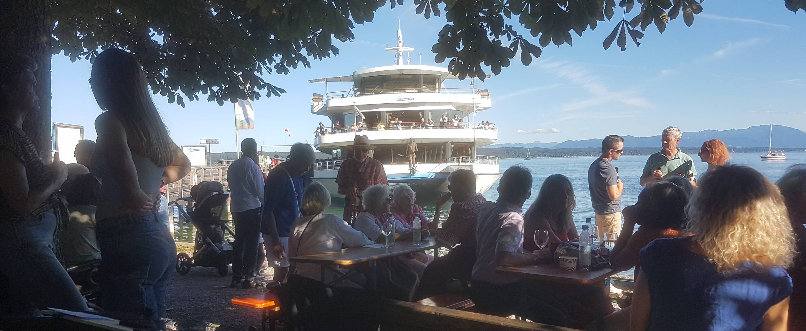 Und den Besuchern auf dem Ufergelände wurde jede Menge an optischen Reizen geboten. Präsentierte sich zuerst das Schiff "Berg", als es anlegte und eine ganze Weile dort liegen blieb, so folgte bald darauf die "Starnberg", die einen großen Schwung Passagiere an Bord nahm. Von beiden Schiffen schauten viele Fahrgäste interessiert auf das Treiben am Ufer.