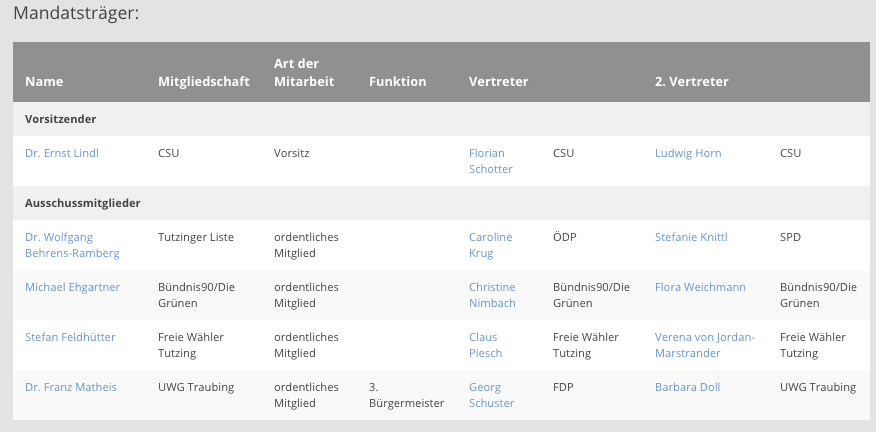 Die bisherige Besetzung der Tutzinger Gemeinderats-Ausschüsse