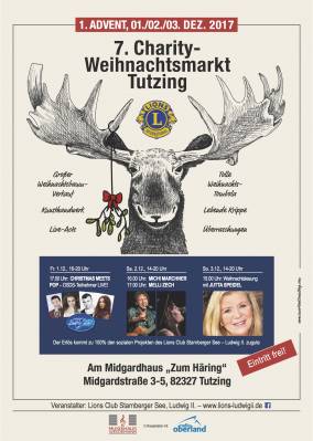 Für den 7. Lions Charity Künstler Weihnachtsmarkt rund ums Midgardhaus werden Live-Auftritte bekannter Künstler und Musiker auf einer Bühne direkt am See angekündigt: Jutta Speidel, Michi Marchner, Melli Zech und Teilnehmer der RTL-Fernsehshow „Deutschland sucht den Superstar“ werden dabei sein. Weiter erwartet werden die Francis-Band der Lebenshilfe Starnberg, die KlinikClowns, Zauberer Tom Kratz und eine Feuershow von „Die Feuerzeuger“. Klar, dass auch der Nikolaus für die kleinen Gäste kommen wird. Die Musikschule Wiedemann wird mit ihren Schülern weihnachtliche Stimmung verbreiten.