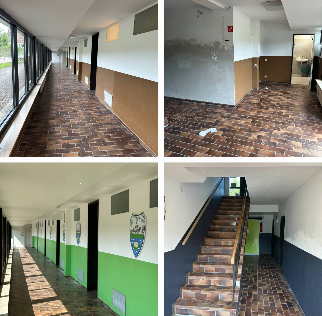 Zunächst wurden Wände und Decke grundiert, bevor der Flur des TSV einen frischen Anstrich in Grün erhielt – passend zu den Vereinsfarben. Die Decke sowie Teile der Wandflächen wurden in strahlendem Weiß gestaltet, was den Räumlichkeiten wieder Helligkeit und Frische verleiht.