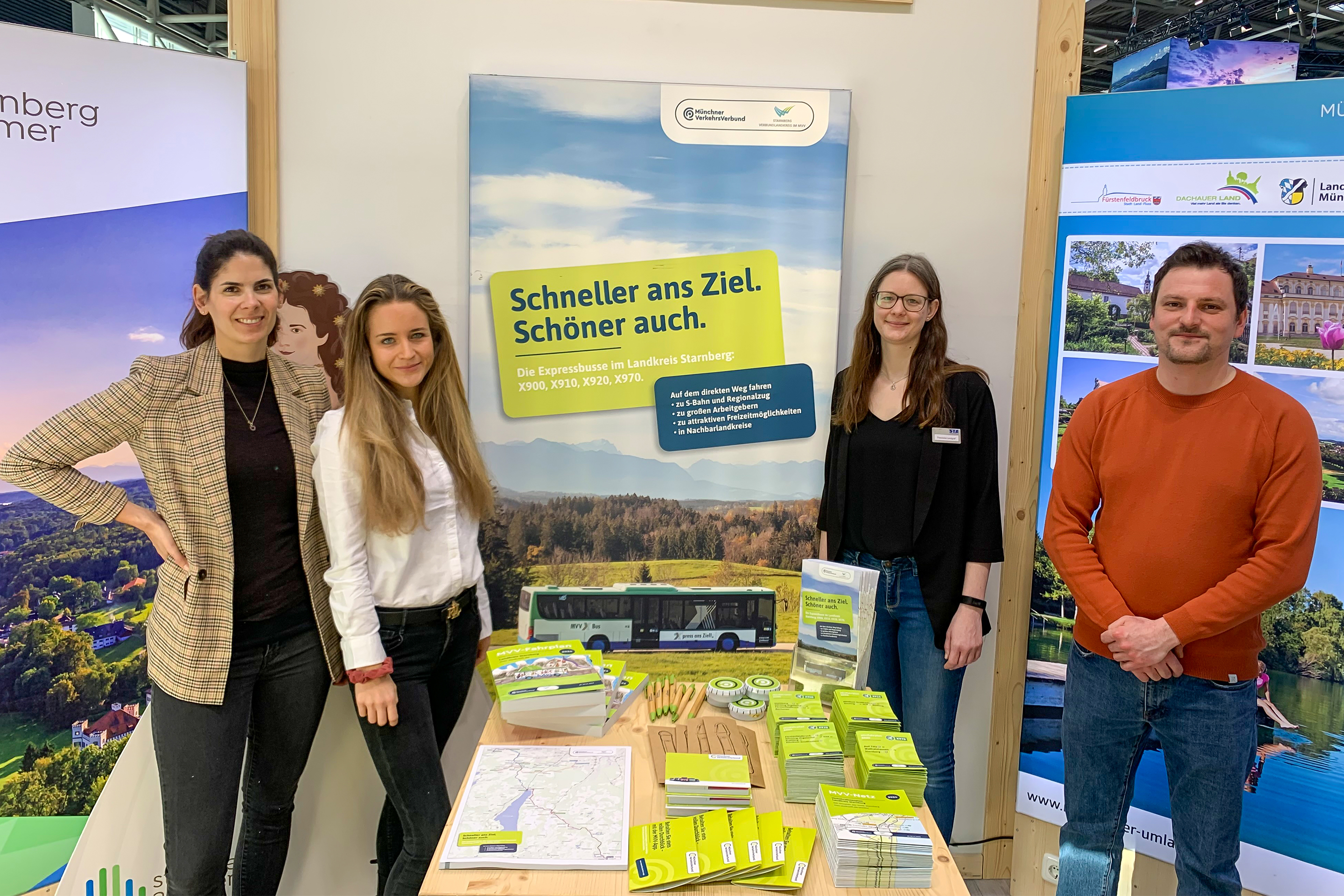 Die vier Expressbusse im Landkreis Starnberg fahren im Regelverkehr täglich von etwa 5 bis 22 Uhr, werktags im 20-Minuten-, sonn- und feiertags im 60-Minuten-Takt. Auf der Münchner Freizeitmesse „f.re.e“ hat das Landratsamt Starnberg kürzlich kräftig für die Expressbusse geworben. Ein Expressbus sei flotter unterwegs als ein Regionalbus, argumentierten die Mitarbeiter des Landratsamts. Eine direkte Vernetzung von wichtigen Zielen wie S- und U-Bahn-Anbindungen, Arbeitsstätten und Tourismusstandorten innerhalb der Region und in die Nachbarlandkreise bei gleichzeitig dichterer Taktung machten den Expressbus zu einer schnellen, attraktiven Alternative zum Auto.