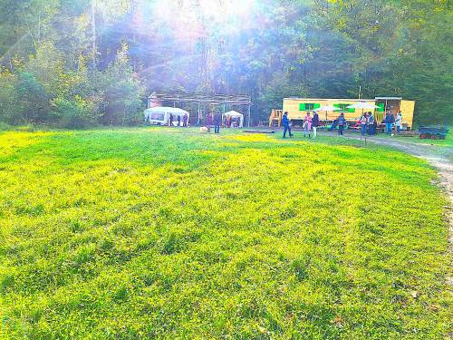 Auch Claudia und Holger Heinz, Oma und Opa von Beni und Lena, fühlen sich schon recht wohl in dieser Umgebung. „Als wir die Kinder mal abgeholt haben, war es hier richtig lauschig“, erzählte Claudia am Freitag, „und wir wurden gleich aufgefordert: Setzen Sie sich doch dazu.“ Alles sei so zwanglos, sagte sie. Holger beobachtete erfreut, wie die Kinder auf einer großen Wiese neben dem Bauwagen Fußball spielten. „Hoffentlich bleibt ihnen diese Möglichkeit erhalten“, bemerkte er. Der Bund Naturschutz habe nämlich wegen des Abmähens der Wiese schon Bedenken angemeldet.