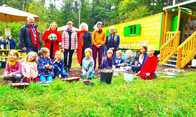 Viel Interesse fand ein eigens angeschaffter Bauwagen, in dem sich die Kinder allerdings seltener aufhalten als draußen. Innen wirkt er recht gemütlich und geräumig, und die Kinder bewegten sich dort, als wären sie daheim. „Sie haben sich sofort wie zu Hause gefühlt“, sagte auch Verbandsgeschäftsführer Christian Boenisch. Tutzings Bürgermeisterin Marlene Greinwald stand neben ihm und war sichtlich begeistert. „Ich freue mich unendlich“, sagte sie. Solche naturnahen Angebote seien gerade in dieser „digitalen Welt“ ein guter Ausgleich für die Kinder. Passend dazu hatte sie den Kindern Fairtrade-Fußbälle mitgebracht - schließlich ist Tutzing mittlerweile eine "Fairtrade-Kommune".