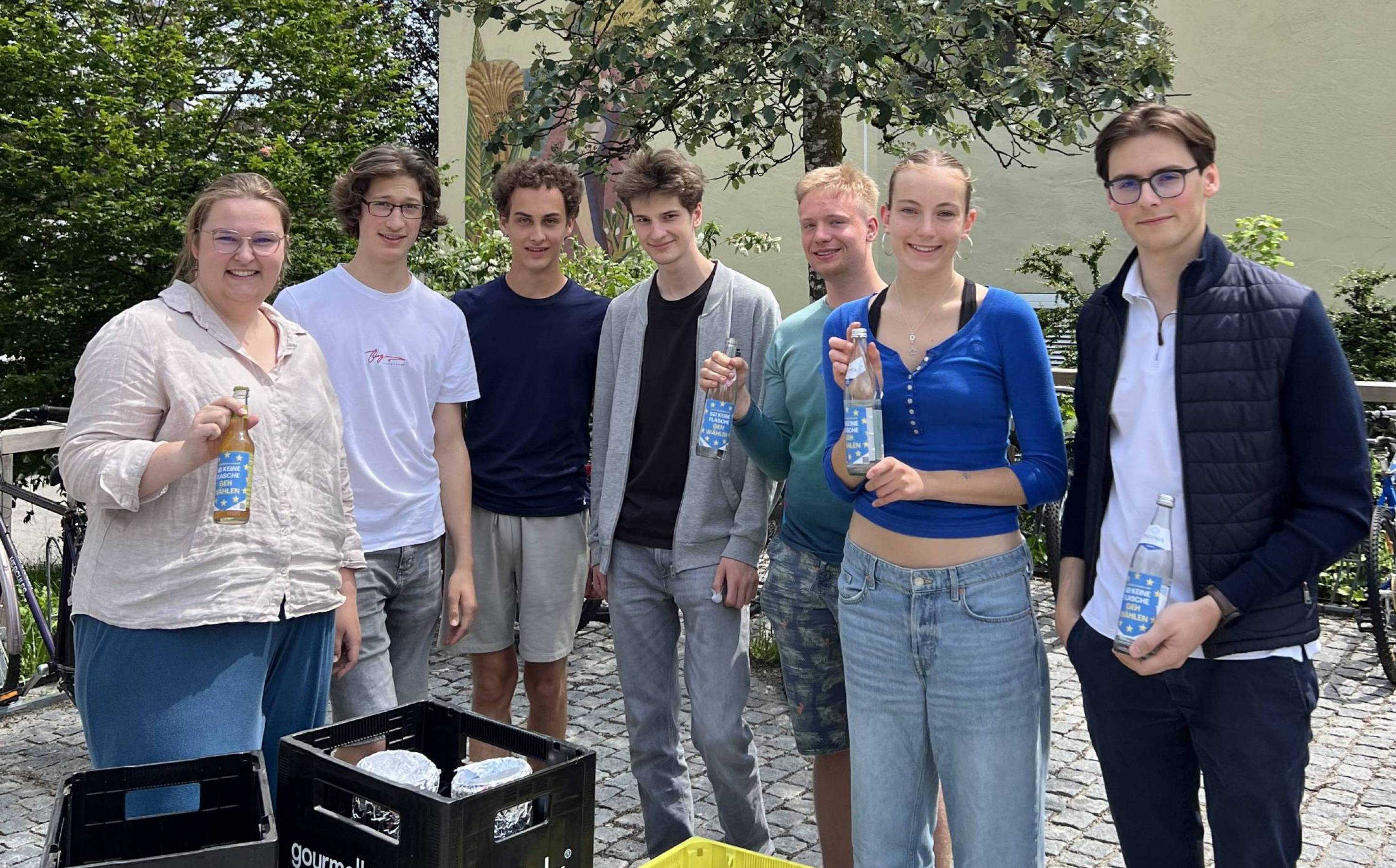 Da staunten die Schülerinnen und Schüler am Donnerstagmittag nicht schlecht. Statt wie üblich nach dem Unterricht zur S-Bahn oder dem Bus zu laufen oder auf das Fahrrad zu springen, wurden sie an der Bushaltestelle vor dem Gymnasium vom Tutzinger Jugendbeirat überrascht. Dieser verteilte Getränke, welche mit einem Sticker mit der Aufschrift „Sei keine Flasche – geh wählen!“ überklebt waren.
