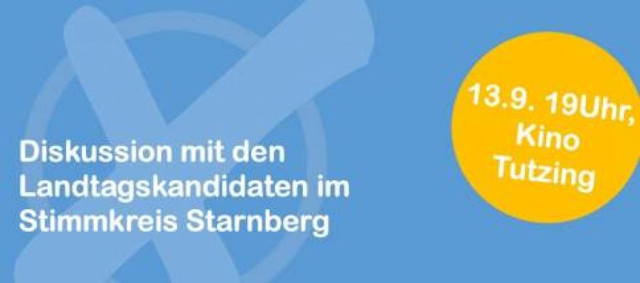 Am 8. Oktober ist Landtagswahl. Wir können die Politik für die nächsten fünf Jahre in unserem Freistaat mitbestimmen. Die Kandidaten sind aber oft unbekannt, genauso wie ihre Positionen und Ideen. Auch das System der Bayerischen Landtagswahl ist kompliziert. Wir möchten Licht ins Dunkle bringen und laden Sie deshalb zur Podiumsdiskussion am 13. September um 19 Uhr im Tutzinger Kino ein. Lernen Sie die Direktkandidaten zur Landtagswahl in unserem Stimmkreis Starnberg kennen, diskutieren Sie mit ihnen über die zukünftigen Herausforderungen für Bayern. Selbstverständlich können Sie die Kandidaten auch direkt mit ihren Fragen löchern.